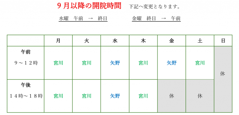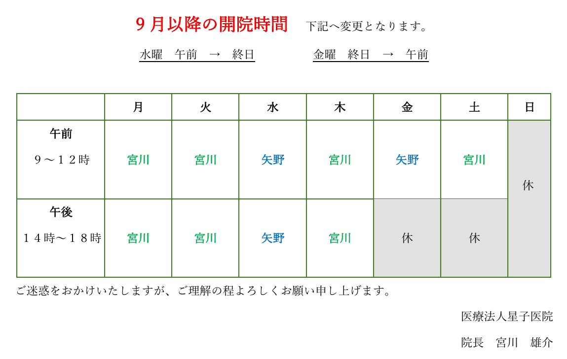 9月以降は安定した体制での診療を予定しております。